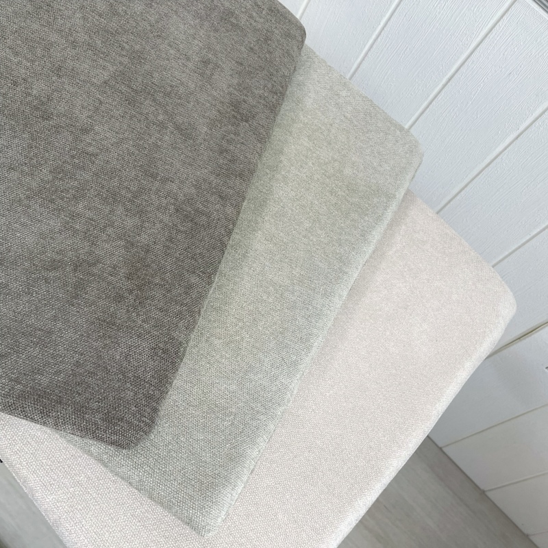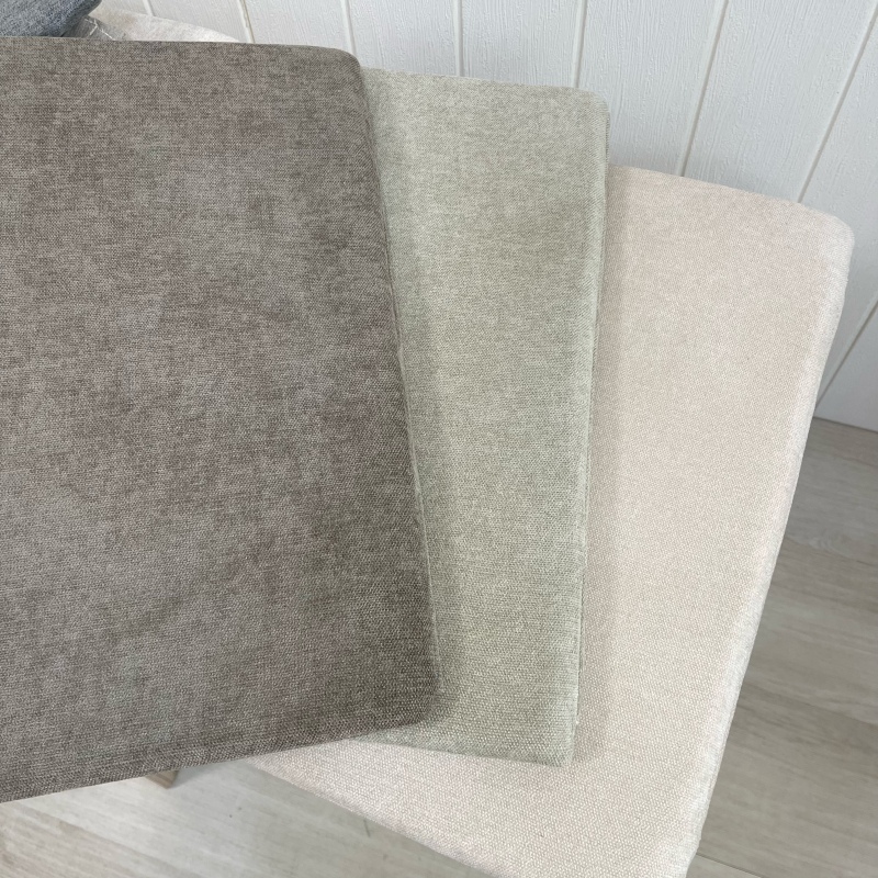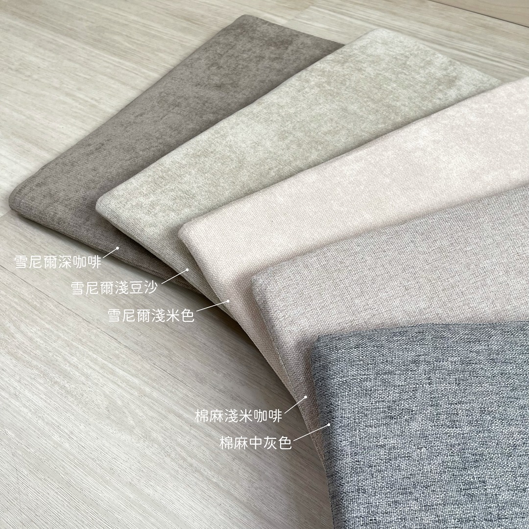 面料材質色卡 短絨毛系列 短絨毛三組顏色- 咖啡、淺豆沙、淺米色 面料手感細緻柔潤 有軟澎白色反光面的類似麂皮視覺感 不易染色,起毛球與皺褶 絨毛系列面料有小毛尖 如愈中等污漬時容易被毛尖阻擋 為好清潔之面料組 棉麻系列 棉麻:淺米咖啡、中灰色 面料手感細緻類似冬季牛仔褲 近距離可以看到布料直橫深淺紋路 布料直橫紋路有隱藏輕度髒污特性 使其看不清楚 為夏季最容易散熱透氣之面料 皮革系列 皮革: 暖日白、蜜砂棕 南亞毛小孩友善醫療級皮革 世界最大台塑南亞集團榮譽出品 永久性抗菌防護,可隨時使用酒精消毒 高耐磨防貓抓,超耐刮且易清潔 本系列皮革與台塑集團全新敦北企業總部 指定使用之家具皮革相同
